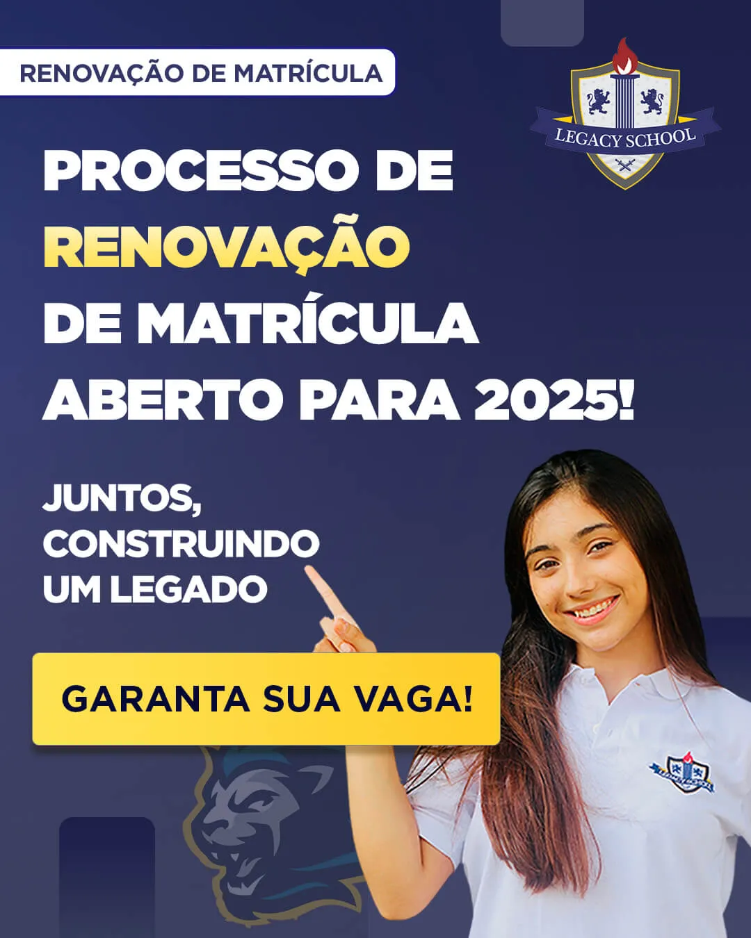 Sabemos que a educação é o agente transformador da sociedade; é com essa esperança na restauração humana, feita através do ensino, que todos estamos juntos construindo o nosso legado. Na Legacy School, acreditamos que a educação deve ir além do conhecimento acadêmico.