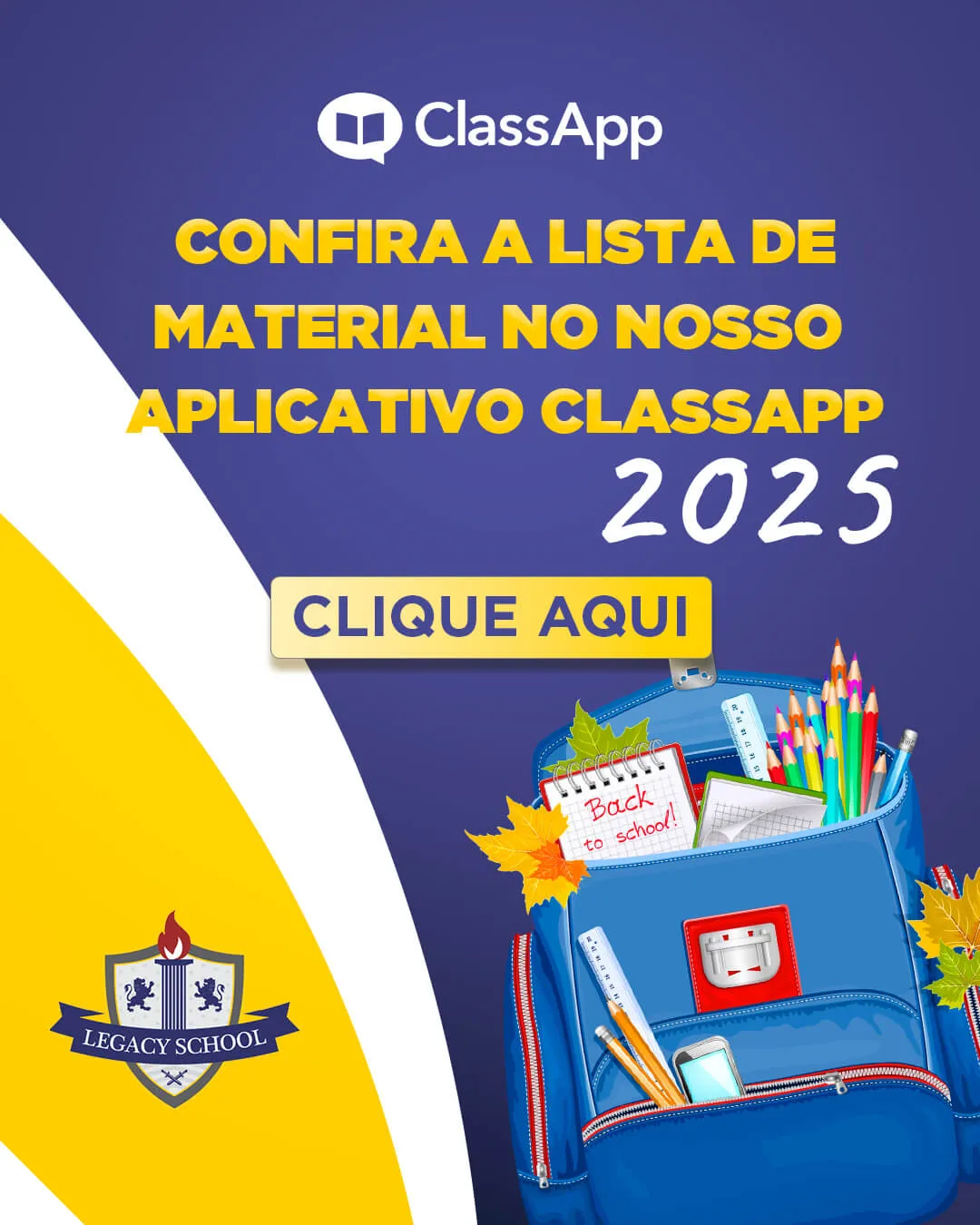 Como apoio pedagógico, trabalhamos com o Sistema Legacy. Um sistema moderno e com base nos princípios critãos, através do qual o aluno pode ter acesso a um mundo novo e atual. Com apoio dos Chromebook temos a Tecnologia presente nas aulas de todas as matérias.